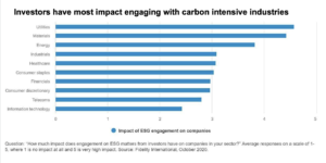 The survey also highlighted the growing importance of ESG engagement among investors. While investors and companies still focus primarily on the environmental aspect, Fidelity noted that there is “ever increasing engagement” around social and governance issues too.