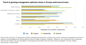 Rising positive business sentiment could plateau amid a second wave of Covid-19, says Fidelity.