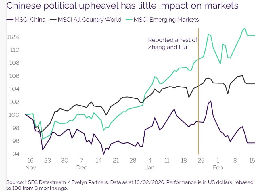 However, so far there has been limited impact on Chinese equities and Emerging Markets (EM) since the purge of the military high command.