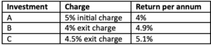 If at the end of two years the three funds are encashed, which investment will be worth the most?
