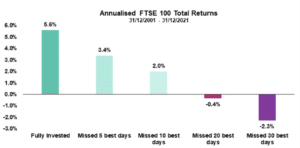 In real terms, a £100,000 investment in the FTSE 100 in 2001 would now be worth just £62,895 if a client missed the 30 best days, a loss of almost £40,000.