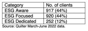 Quilter said 44% of clients are ESG ‘aware’, which means they are aware of the ESG rating of their portfolio.