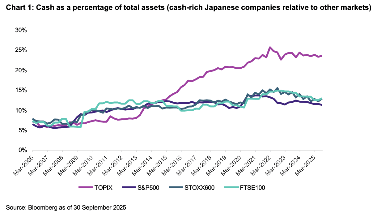 One of the areas under particular scrutiny is the use and the disclosure of cash holdings. Japan still has a significant number of cash-rich companies, and policymakers are increasingly encouraging boards to deploy capital in ways that create shareholder value. This could potentially lead to a rise in the number of corporate actions, including higher shareholder distributions, capital expenditure or restructuring. These developments should support share prices, particularly for companies where large cash balances have historically weighed on valuations.