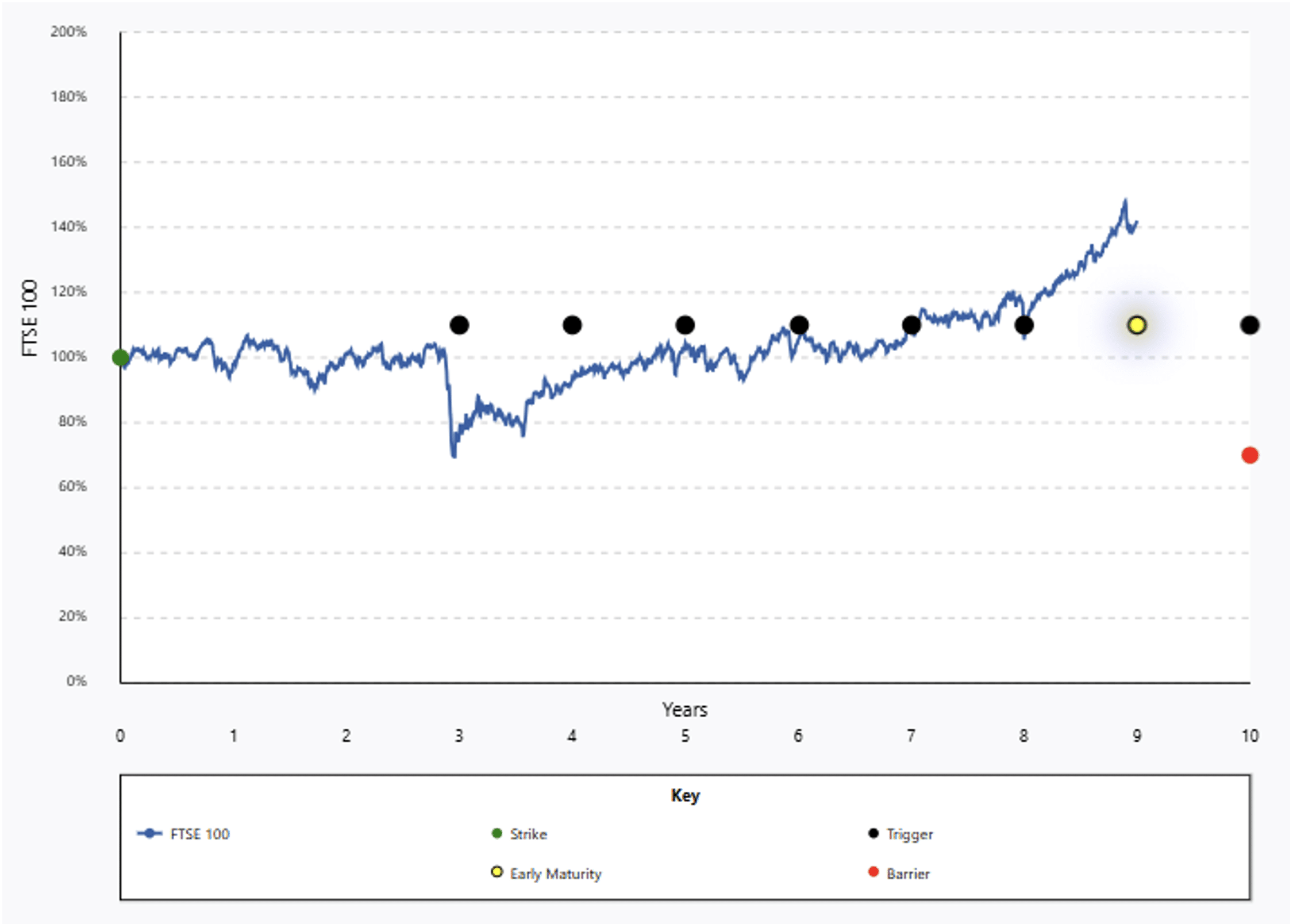 Maximum term 10 years – 70% capital protection barrier on final date if not matured earlier.