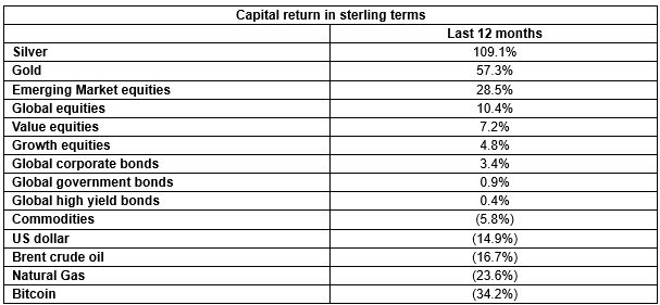 The last 12 months have seen a further shift in momentum, as precious metals, emerging market equities and ‘value’ equities take the lead.