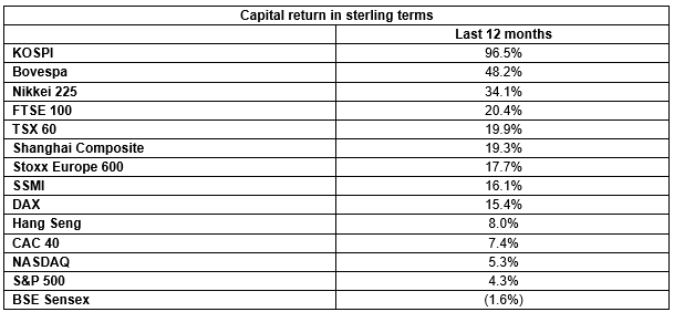 Emerging markets have taken the lead, having started at a much lower valuation point and taken strength from the decline in the greenback and gains in raw material prices, although Korea’s boom owes much to the AI exposure afforded by the memory chip prowess of index heavyweights such as Samsung Electronics and SK Hynix.