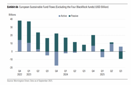 Global sustainable open-end and exchange-traded funds registered net outflows of about USD 55 billion in the third quarter of 2025, Morningstar’s latest research Global Sustainable Fund Flows: Q3 2025 shows.