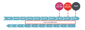 If, in a 7 year period, the individual makes a PET, then a CLT and subsequently dies, the PET will become a “chargeable transfer” (or “failed PET). Both the “failed PET” and the CLT will be included in the IHT calculation of the individual.