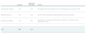 A higher macro-economic volatility regime and greater stock dispersion, due to less concentrated equity market returns, also provides more opportunity for bottom-up alpha generation, both on the long-only side and long short. For alternative absolute return strategies, term premia and the higher cash rate will further support returns, supporting the 7% expected return from this exposure.