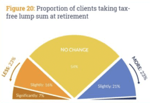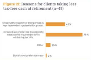 “The research shows advisers are split on whether people have taken more or less tax-free cash at the point of retirement over the last few years but where they have taken less, use of drip-feed drawdown was the driving force.”