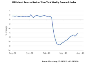 The lack of V rebound in economic activity is well illustrated by one of the more timely economic data series, namely the US Federal Reserve Bank of New York Weekly Economic Index, which is updated twice weekly, and is designed to reflect US GDP growth rates. It is clearly not a V.