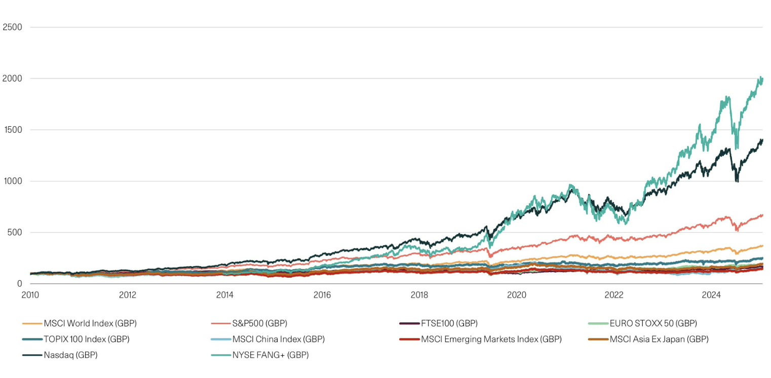 Some stocks are certainly “expensive” and around a third of the main US equity index’s weighting is dominated by just seven stocks. What goes up sharply can go down if the environment changes. We have written before about how we approach equity stock selection and, because we are not passive investors, we do not have to buy every stock in an index. This means we choose to avoid certain stocks on very high valuations and can, instead, focus on companies which are benefiting from the same themes. Being diversified always matters but being active and able to buy the best stocks globally regardless of their location is an advantage, we believe.