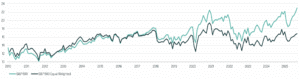 Normal market concerns (growth, inflation, interest rates) have been somewhat dwarfed by tariff war worries at points in the last year. The US election was won with the promise of tariffs to protect US jobs and there has been some success in getting foreign companies to invest more in US production. The problem with tariffs is that they create what is effectively a tax on consumers and not just on exporters. So, somebody has to pay around $350bn a year and that burden will fall to a lesser or greater extent on US consumers depending on what companies can pass on in price increases. This could harm demand but also is, obviously, inflationary. Bond markets have, as usual, been ahead of equity markets in recognising inflationary risks with both US and UK bond yields remaining higher than their governments would like, which is a constraint on interest rate cuts. But, since the summer, diminishing market concern about inflation, perhaps because of more evidence of labour market weakness implying that growth is slowing, has been evident. In addition to this, trade deals are being done and the market is expecting China and the US to get to an agreement soon given a trade war is in neither economy’s interests. (The UK, being independent in its trade policy now, has struck a better deal with the US than the EU and has also done deals with India and others.)